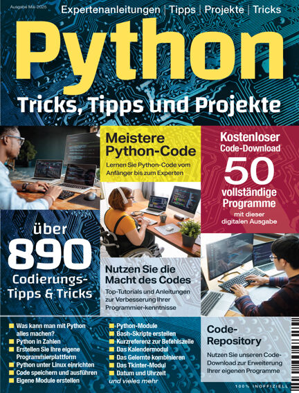 Python - Das essentielle Handbuch deckt die Tools ab, die Sie zum Programmieren benötigen, sowie die ersten Codezeilen, die Ihre Welt für immer verändern werden. Sie finden hier aktuelle Schritt-für-Schritt-Anleitungen, die Ihnen dabei helfen werden, das Programmieren in den Griff zu bekommen, Ihre Kenntnisse und beruflichen Perspektiven zu verbessern und Ihren Horizont zu erweitern.